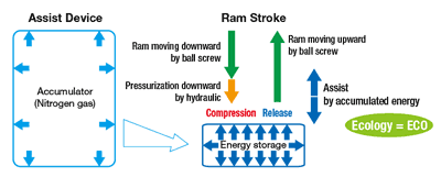 assist device that stores the energy of down movement and returns it